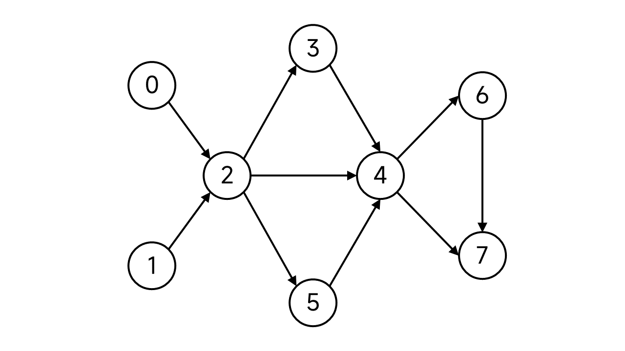 这个序列需要满足:对于图中每一条有向边 u→v,u 在序列中都必须排在 v 的前面。 注意:拓扑排序的结果不唯一—— 只要满足依赖关系,不同的顺序都是合法的。比如上面的选课例子,线代和概率论谁先谁后都可以,因为它们之间没有依赖。