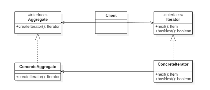 - 解耦存储与遍历:聚合对象专注于数据存储,迭代器专注于遍历逻辑,两者独立演化,降低耦合。