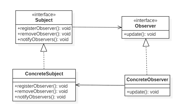 | 主题(Subject) | 定义管理观察者的接口: - 注册观察者(registerObserver()); - 移除观察者(removeObserver()); - 通知所有观察者(notifyObservers())。 |