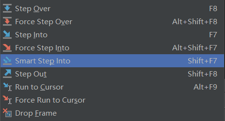 • Force Step Into (Alt + Shift + F7):强制步入,能进入任何方法,查看底层源码的时候可以用这个进入官方类库的方法。