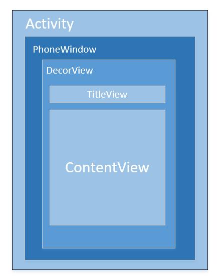 一个Activity的显示内容有哪些呢?我们在Activity的onCreate()方法中调用了setContentView()方法,传入了我们绘制的layout文件,也就是我们理论上应该看到的Activity内容。但是Android系统在启动一个新的Activity时,首先进行的并不是绘制Activity Content View,我们来看看一个Activity的UI结构。