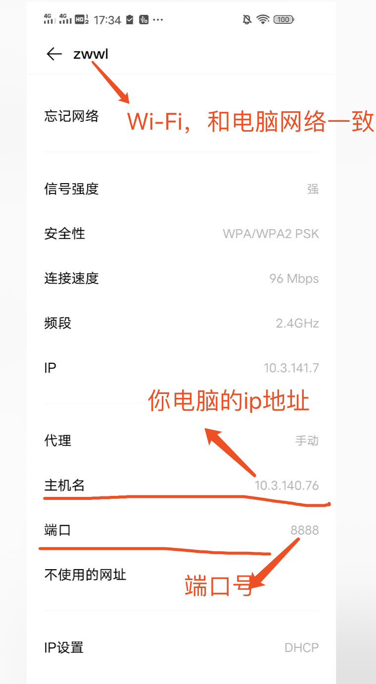 • 然后打开手机设置代理