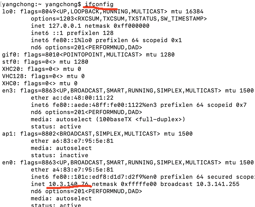 • 第二种方式:命令行方式,输入ifconfig即可